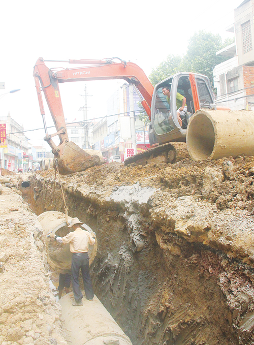 孝昌縣鄒崗鎮鎮區現有排水管網存在使用時間長、規模小、規劃不合理等問題。今年,鄒崗鎮投資13萬元,對鎮區排水管網進行改造,加快排水速度。圖為孝昌縣鄒崗鎮文衛街下水道改造施工現場,吊車正在安裝涵管。 |