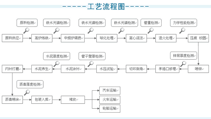 ●工藝簡要:管子進行噴鋅處理主要是為了增強防腐性能,我公司生產的球墨鑄管全部經過噴鋅防腐處理。