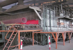 ●工藝簡要:精選的鐵礦石經過高爐冶煉,制備出球墨鑄鐵管生產所必需的鐵水。泫氏鑄管采用高爐-中頻爐短流程連鑄工藝、高爐廢氣再利用(球管退火)、節省二次化鐵的能耗、降低了生產成本、保證生產節奏的連續。