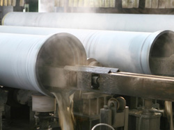 ●工藝簡要:將做完水泥內襯的管道放置在養生池中,進行蒸汽養生能極大提高水泥內襯的抗壓能力。